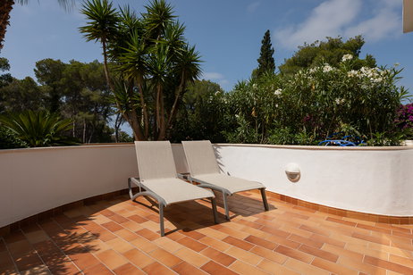 Eine herrliche private Terrasse, komplett möbliert, sticht hervor. Es handelt sich um einen bezaubernden Raum, umgeben von viel Grün und mit einem fantastischen Blick auf Cala Pada, perfekt, um den Sonnenuntergang zu genießen.