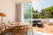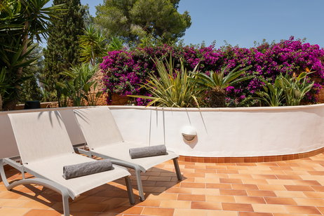 Destaca una espléndida terraza privada, completamente amueblada. Se trata de un espacio con mucho encanto, rodeado de vegetación y con unas fabulosas vistas a Cala Pada, que resulta perfecto para contemplar el atardecer.